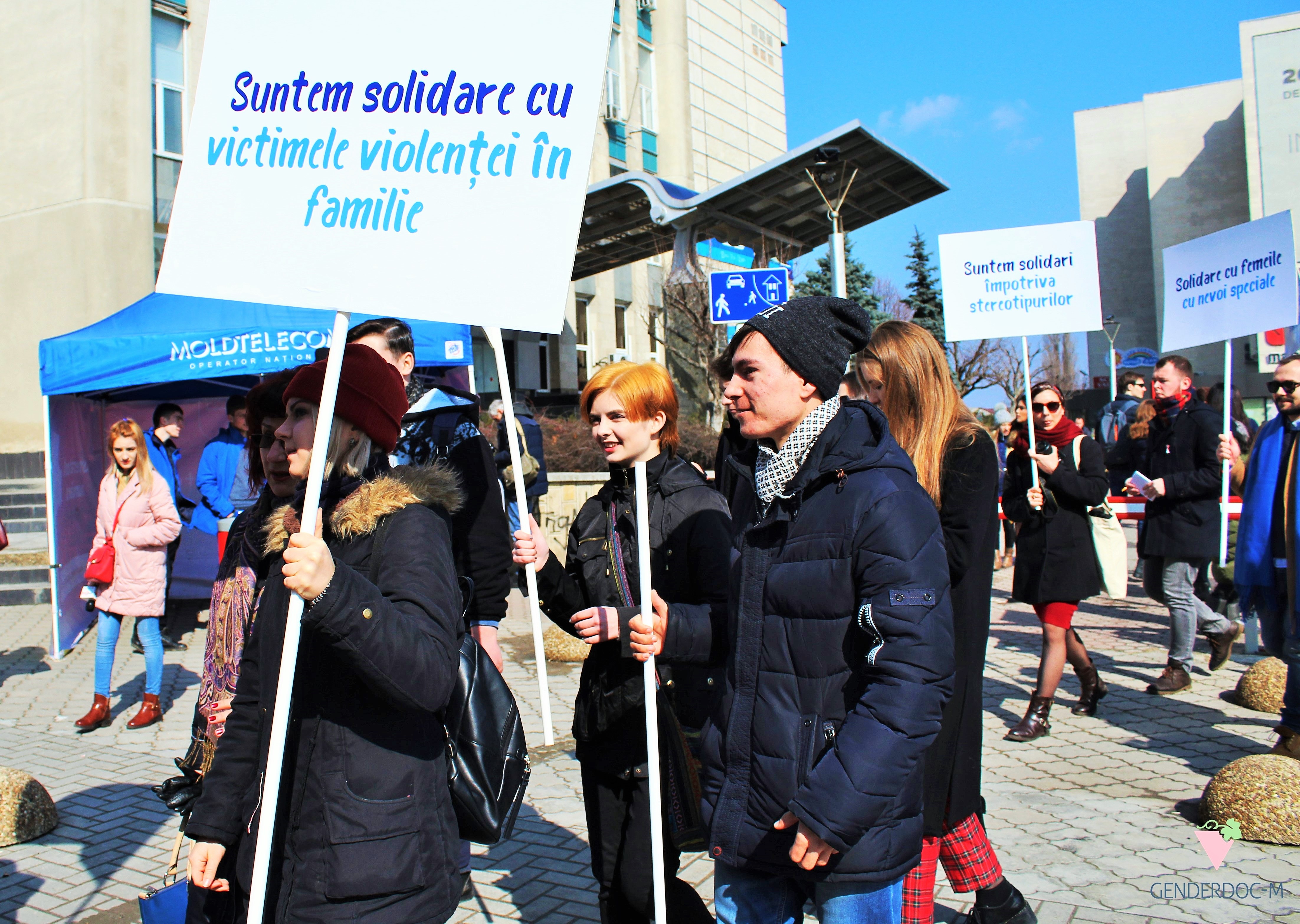 În data de 8 martie, Centrul de Informații GENDERDOC-M (GDM), împreună cu Platforma pentru Egalitate de Gen au organizat „Marșul solidarității între femei”. Zeci de oameni, printre care ambasadori, politicieni și reprezentanți ai societății civile s-au alăturat, pentru a atrage atenția asupra problemelor cu care se confruntă, în prezent, femeile din Republica Moldova și a cere respectarea drepturilor lor de la instituțiile statului.