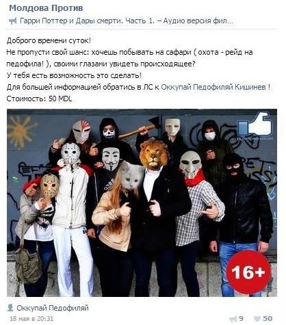Pe 25 septembrie, Stas Vânătorul (Stas Ghibadulin), conducătorul mișcării sociale neoficiale „Scutul Social”, care pentru 50 de lei a organizat un safari demonstrativ împotriva gay-lor și a așa numiților „pedofili”, pe pagina sa de Facebook a împărtășit un mesaj îmbucurător. El, membru și al altei asociații neoficiale numită „StopHam”, a primit mulțumiri din partea lui  Markel, Episcop de Bălți și Fălești.