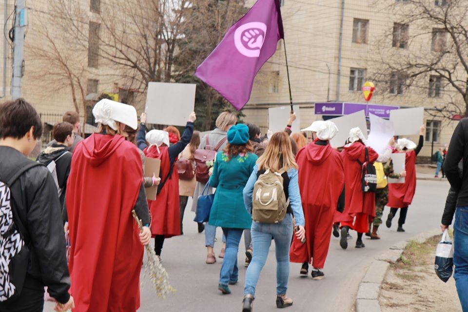În acest an, mai multe participante au ales să îmbrace pelerine de culoare roșie și bonete albe, ca cele ale slujitoarelor din serialul „Povestea slujitoarei”, după romanul cu același nume a autoarei canadiene, Margaret Atwood: „Este o aluzie la filmul „Povestea slujitoarei, care ne arată acel viitor care ne așteaptă în cazul în care nu vom lupta pentru drepturile noastre. Filmul este despre cum femeile și-au pierdut toate drepturile și libertățile și au devenit mașini de făcut copii. Femeile nu se mai pot bucura de drepturi elementare, cum ar fi să citească sau să scrie. Este ceea ce se poate întâmpla, dacă vom reveni la pseudovalori tradiționale care contravin drepturilor omului”, a declarat Anastasia Danilova, directoare executivă a Centrului de Informații GENDERDOC-M.