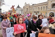 Sub bonetele identice, fiecare participantă purta un mesaj diferit, important și uneori personal. Este și cazul bloggeriței Alexandra Evseeva: „Acest costum reprezintă felul în care victimile abuzului sexual sunt învinovățite în societatea noastră. Pe blogul meu de pe Instagram ajut femeile care au fost supuse violenței sexuale, pentru că sunt și eu victimă a abuzului sexual”.