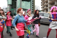 Pe toată durata sa, aproximativ trei ore, marșul a fost acompaniat de tobele comunității civice Occupy Guguță: „Mișcarea Occupy Guguță se solidarizează cu toate grupurile care, în țara asta, nu știm de ce, nu sunt considerate egale, nu sunt îndreptățite să protesteze sau să își spună cu voce tare problemele. Noi suntem împotriva sexismului în orice domeniu, de aceea vom veni mereu să susținem acest marș. În grupul nostru de fete și băieți toate părerile sunt la fel de importante și egale, și vrem să vedem aceleași reguli în societate”, a spus Ana.