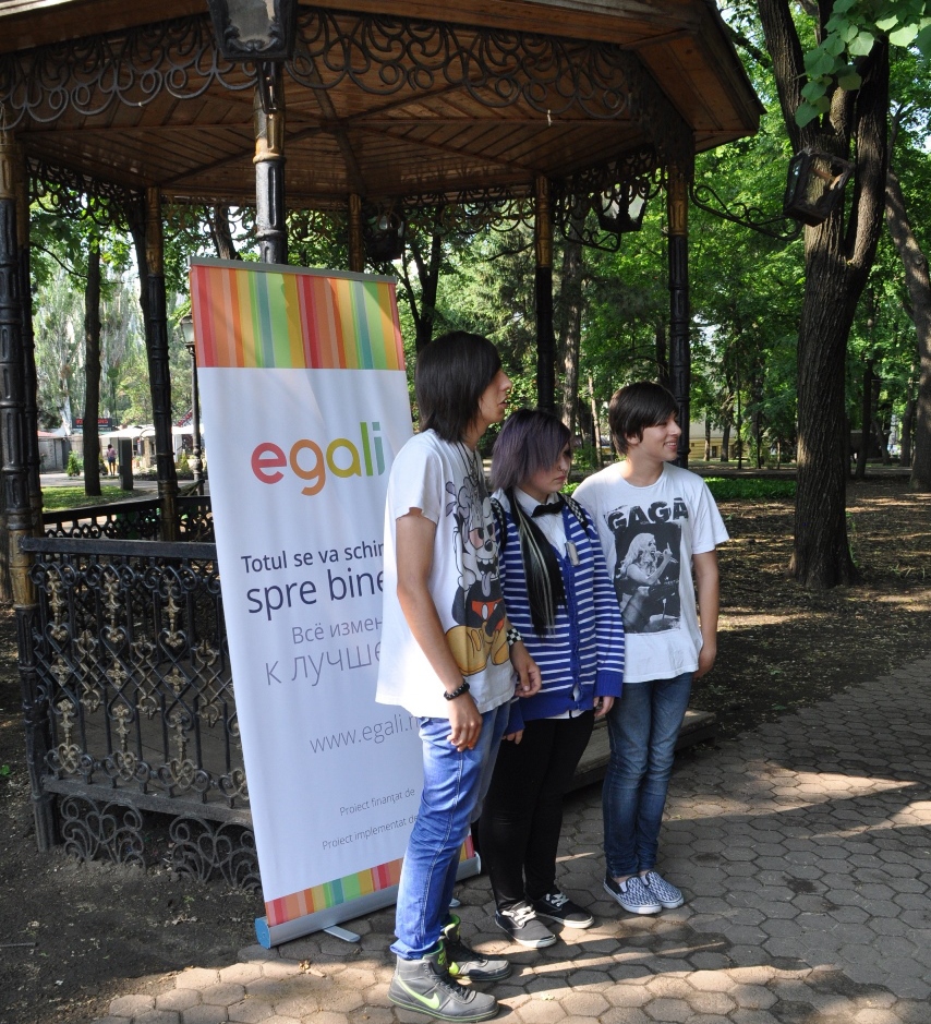 Anume astfel s-a numit acţiunea publică, care a avut loc miercuri, la 15 mai, în Grădina publică „Ștefan cel Mare”. Scopul desfășurării ei a fost să colecteze adresări către persoanele LGBT și întreaga societate. De facto, acţiunea respectivă a avut menirea să completeze colecţia de adresări video din partea persoanelor publice, psihologilor, artiștilor, jurnaliștilor și a altor specialiști, adresări deja înregistrate și pe care le puteţi viziona, accesând site-ul proiectului „egali.md”.