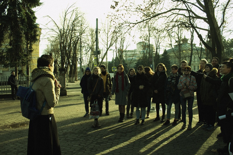 Fiecare loc, în care grupul de „turiști” se oprește să asculte o nouă istorie, pare să capete culoare și sens. Străzi pustii și clădiri vechi ascund în sine evenimente importante și drame personale. Participanții își prind periodic privirile și zâmbesc dându-și de înțeles că recunosc istoria sau personajele.
