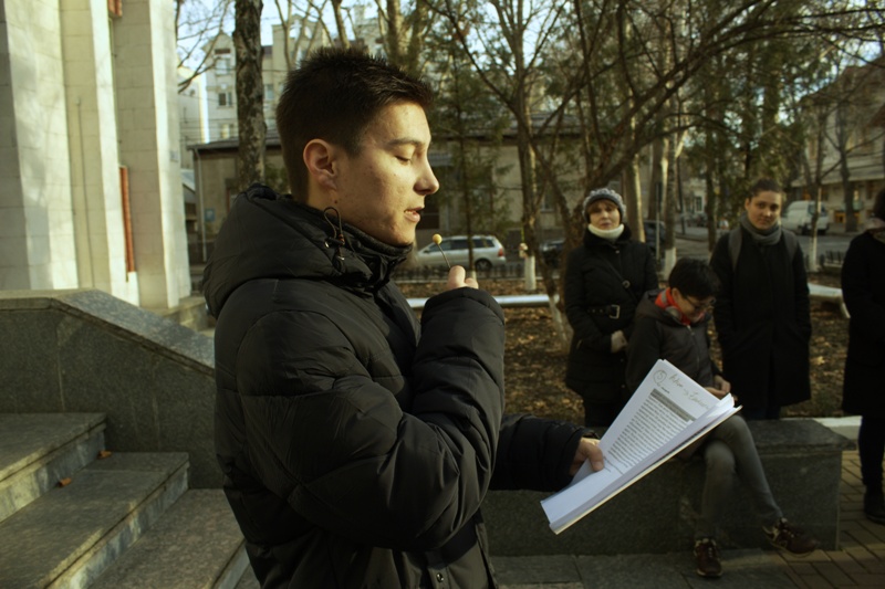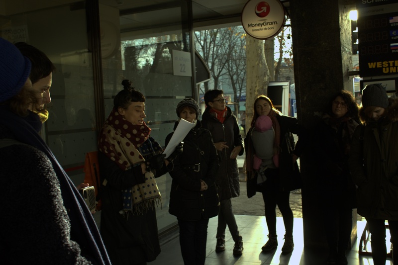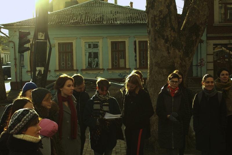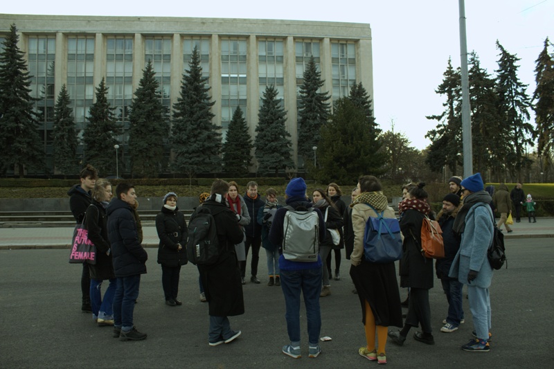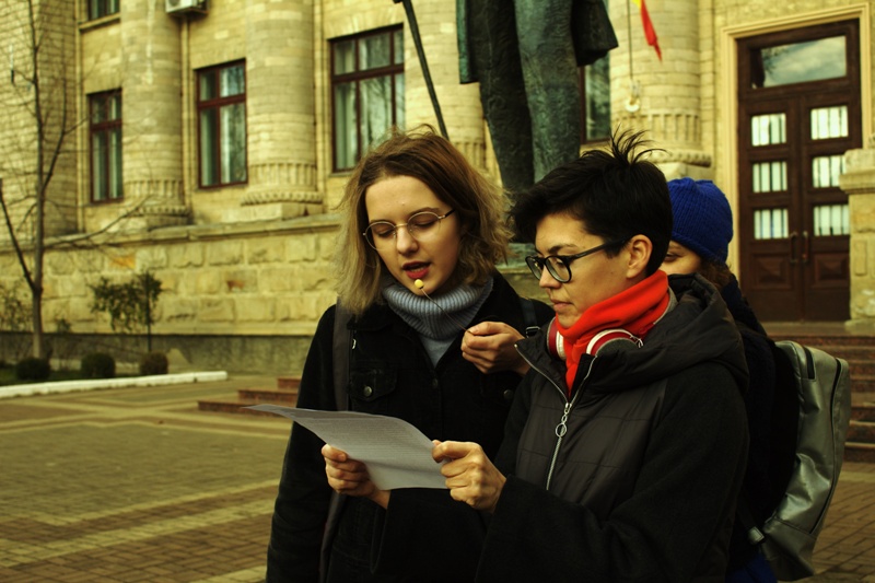 E un început de decembrie plictisitor de gri. Din acest motiv participanții la turul queer al orașului Chișinău par să formeze o oază de culoare la intrarea în Grădina Publică din centrul orașului, acolo unde începe traseul. Vestimentația de culori aprinse este absolut neobișnuită pentru oraș în această perioadă a anului, în schimb ordinară pentru persoanele queer în orice colț al lumii, chiar și în orașele sure. Intrușii atrag imediat priviri și întrebări. Organizatorii se abat periodic de la textele ghidului, tipărite pe foi A4, pentru a satisface curiozitatea trecătorilor.
