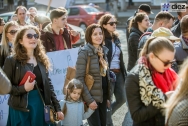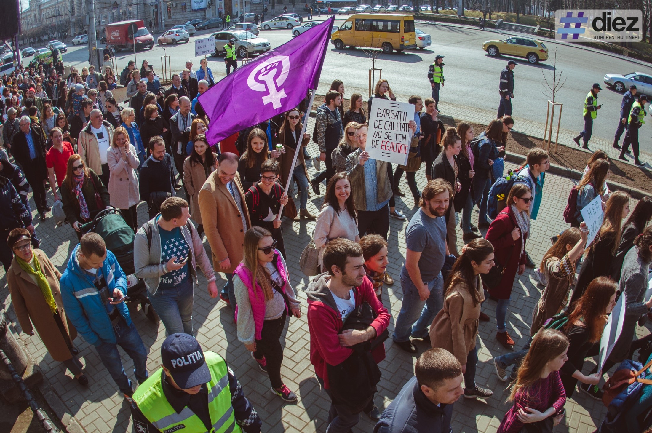 В назначенный час несколько сотен человек, среди которых мужчины и женщины с детьми и без них, русскоговорящие, румыноговорящие и англоговорящие, журналисты, представители гражданского общества, иностранцы и простые жители Кишинева, собрались у торгового центра Unic, сформировали колонну и двинулись маршем по проспекту Штефана чел Маре.