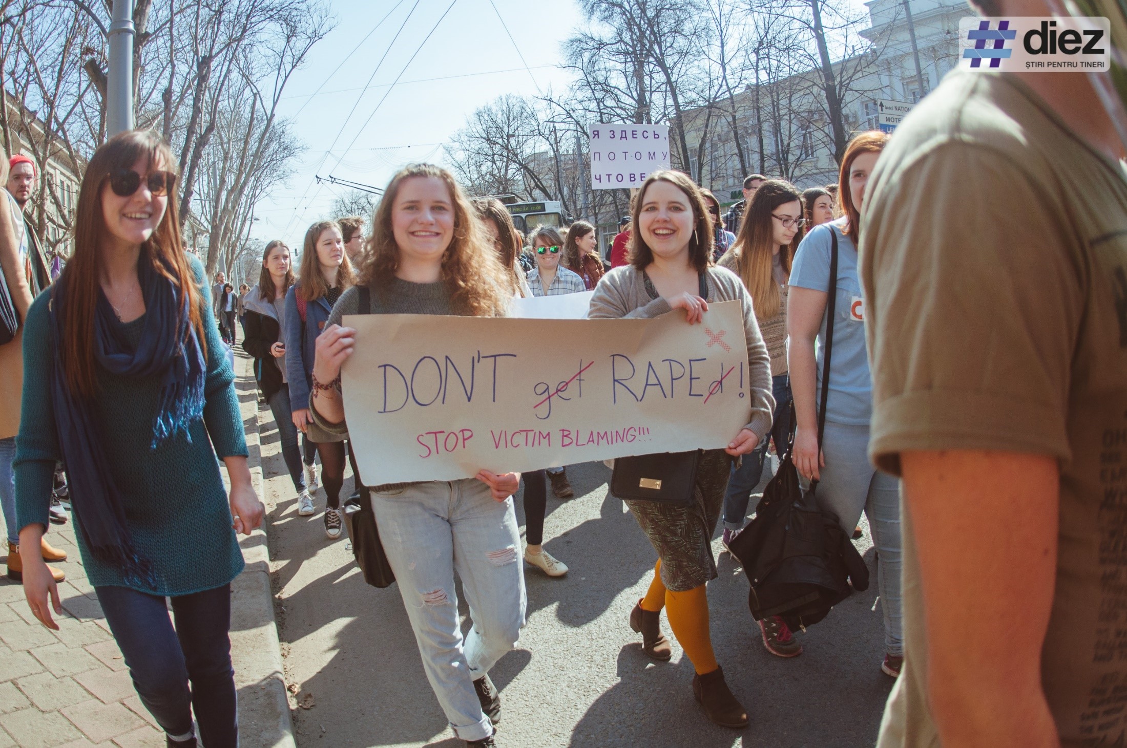 В прошлом году, по словам Частухиной, в Молдове было зарегистрировано более 600 случаев сексуального насилия. «Мы не хотим цветы или шоколадки, мы хотим равные права. Сегодня мы вышли, чтобы выразить свою солидарность со всеми жертвами насилия, со всеми женщинами, которые говорят «Нет», но их «Нет» воспринимают, как «Да». Сегодня мы говорим: «Нет значит Нет»», — сказала в мегафон Частухина.