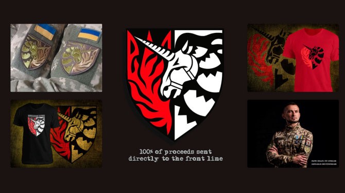 "Единорог в геральдических книгах уподобляется храброму воину. Красная половина рисунка включает в себя трезубец (национальный символ Украины), красный огонь (символ угрозы, которую солдаты представляют для своих врагов) и огненный меч (военный символ). Белый цвет символизирует благородство солдат", - пояснили в компании.