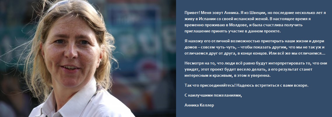 Участницы и участники встретятся со шведским фотографом Анникой Келлер, которая будет снимать их в естественных условиях их жизни (дом, семейный праздник, поход за покупками, прогулка в парке, проезд в общественном транспорте и т.п.). В фотопроекте могут принять участие как люди, не скрывающие свои идентичности от окружающих, так и те, кто ещё по каким-либо причинам не готовы открыть своих лиц. В последнем случае фотограф будет искать такие ракурсы, чтобы личность человека осталась неузнаваемой, но при этом, чтобы в кадр попадали важные детали.