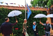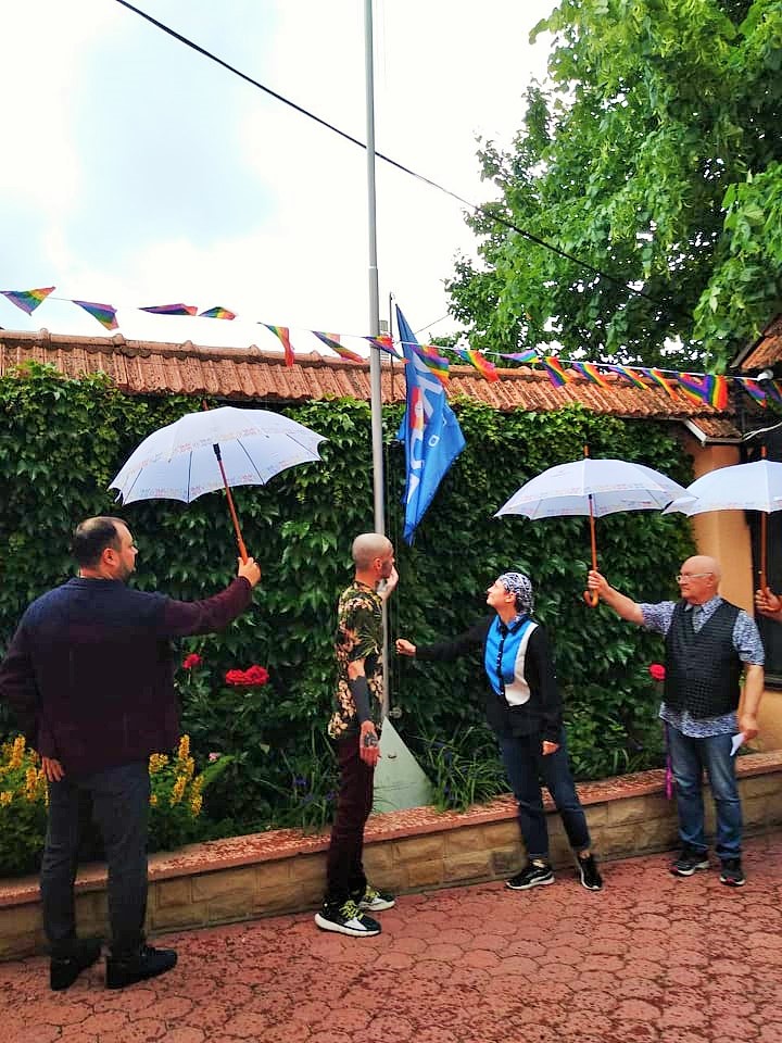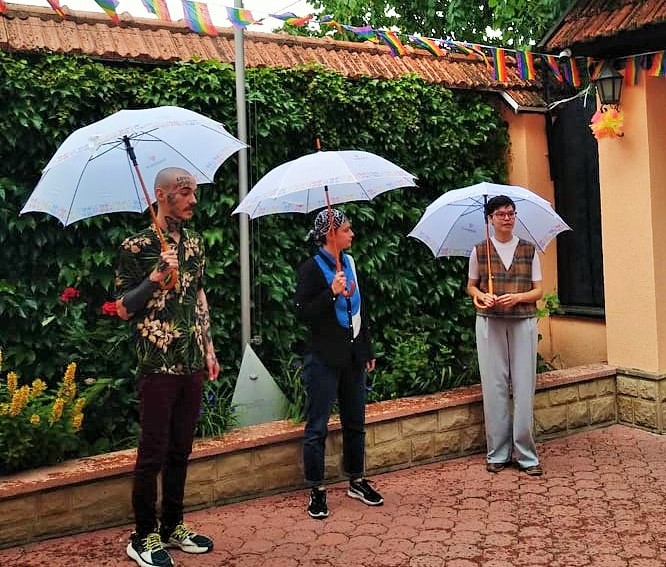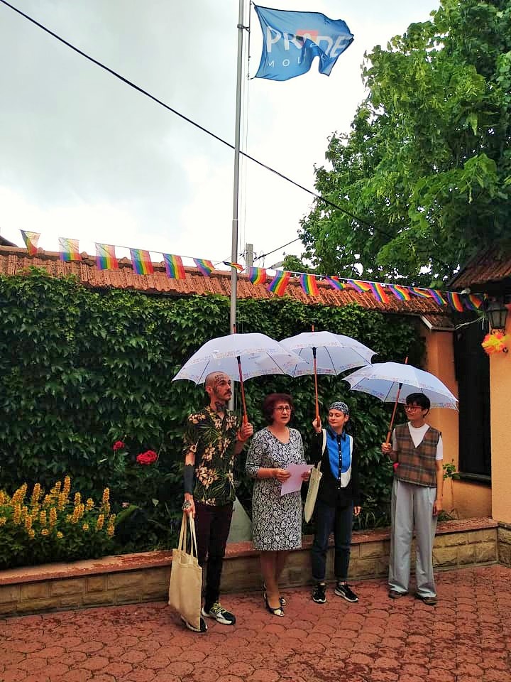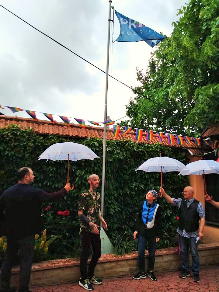 Церемония продолжилась торжественным подъемом флага Фестиваля «Moldova-Pride». Это особенный момент для членов организации, поэтому каждый год для этого выбираются новые люди, которые своими делами и поступками заслужили это почетное право. В этом году радужный флаг подняли молодой гей Марин, переживший дерзкое нападение гомофобов и не побоявшийся дать интервью СМИ с открытым лицом, и небинарный человек Мар Мунтяну, которая проявила смелость открыто сказать о своей идентичности в социальных сетях.