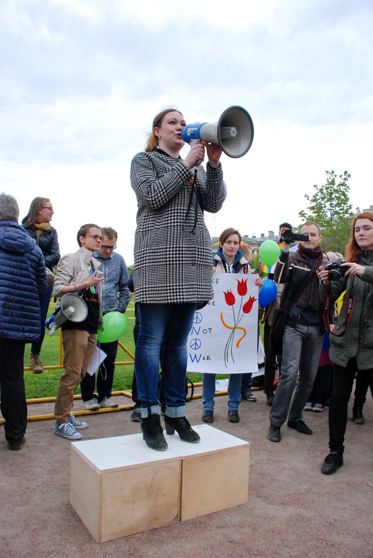 На прайд был отчасти похож Первомай в Петербурге. В ежегодной демонстрации принимают участие разные политические партии, движения и активисты, в том числе ЛГБТ+.