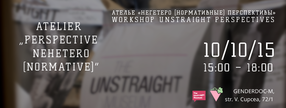 Centrul de Informații „GENDERDOC-M”, The Unstraight Museum și Muzeul Östergötlands (Suedia) vă invită să participați la atelierul „Perspective nehetero(normative)” care va avea loc sâmbătă, 10 octombrie, la sediul Centrului GENDERDOC-M (str. Valeriu Cupcea 72/1, Chișinău).