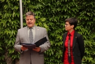 Sărbătoarea a început cu tradiționala arborare a drapelului Moldova Pride. În acest an, drapelul a fost arborat de Elena Mitieva, una dintre primele angajate ale Centrului de Informații Genderdoc-M și Tatiana Chebac, noua președintă a Boardului organizației.