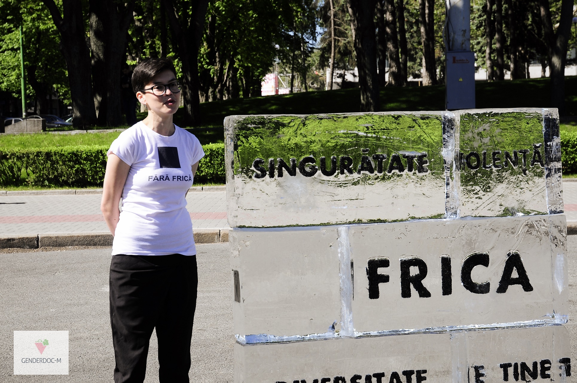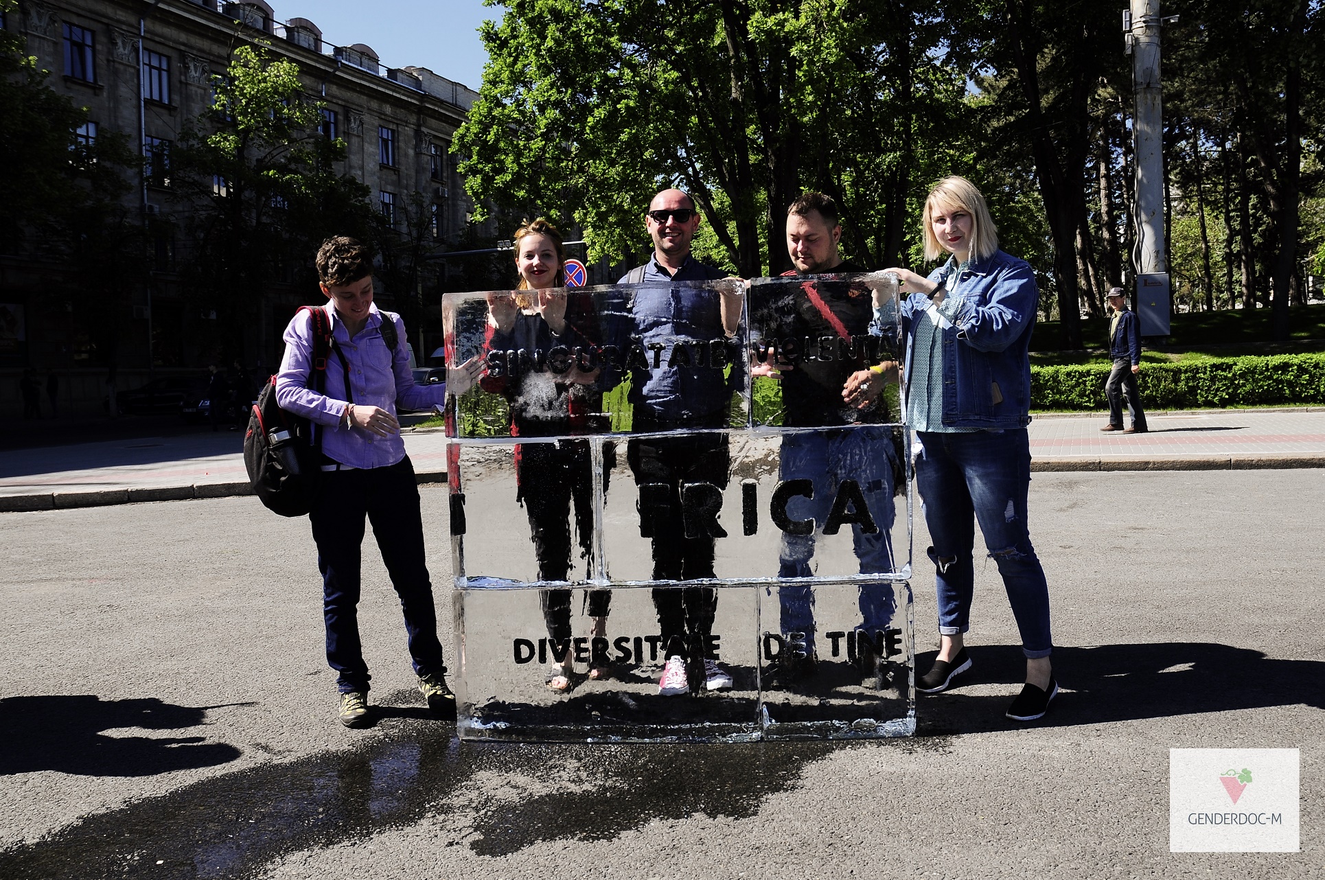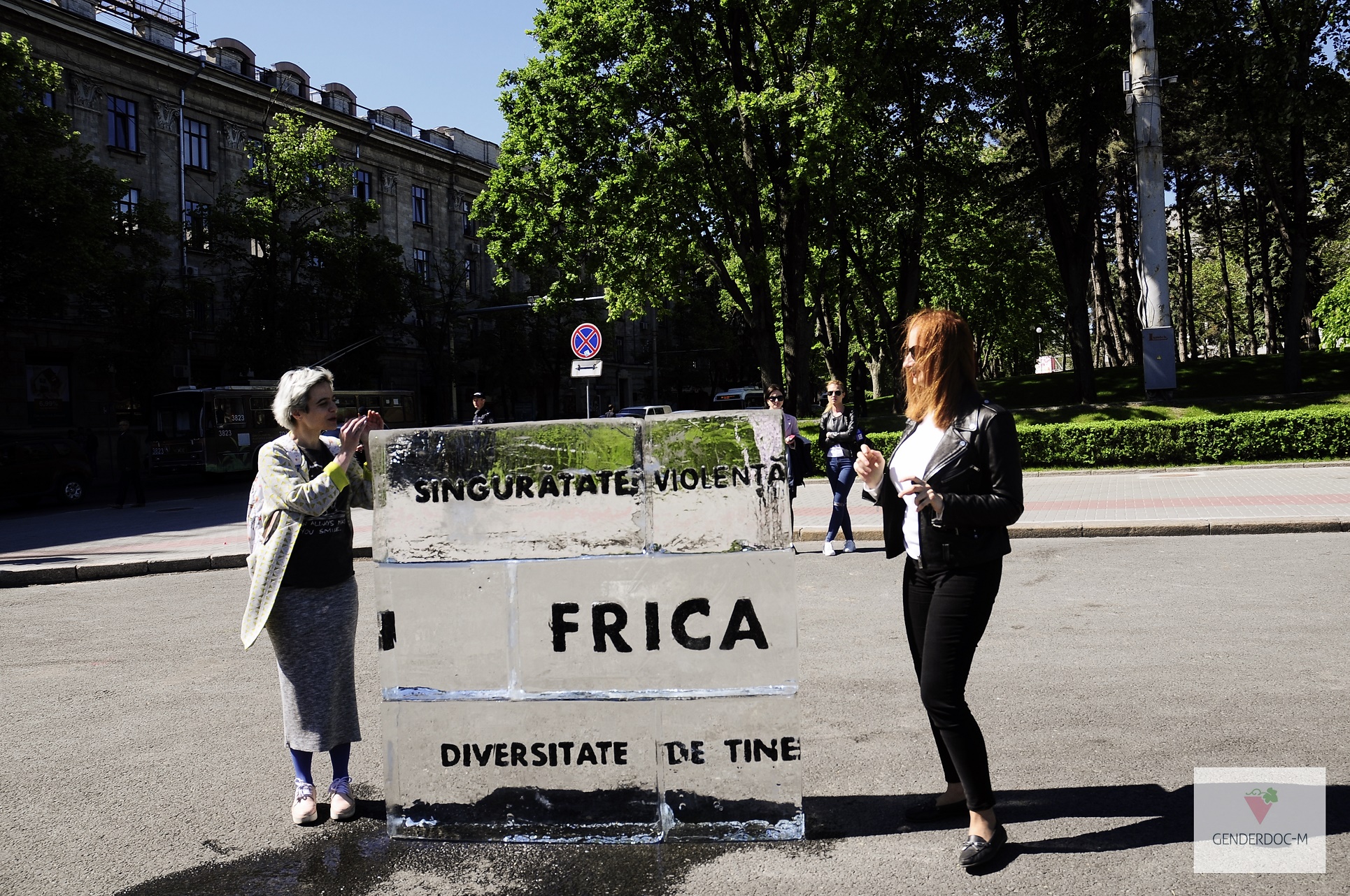 Centrul de Informaţii GENDERDOC-M organizează un performance urban - „Topim gheața discriminării”, ce are loc acum în Piaţa Marii Adunări Naţionale, în faţa Guvernului. Performance-ul are la bază un cub de gheaţă de circa 1,5 metri înălţime, pe care sunt gravate cele mai frecvente frici ale oamenilor.