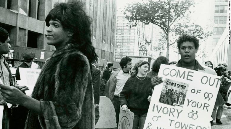 Marsha P. Johnson a rămas în memorie drept una dintre cele mai importante activiste pentru drepturile persoanelor transgender, deși termenul „transgender” nu era utilizat în timpul vieții sale. Johnson se identifica drept „travesti”, gay și regină drag, și folosea pronumele „ea”.