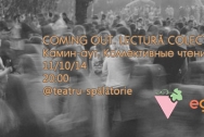 Центр информации «ГЕНДЕРДОК-М» приглашает вас 9 – 12 октября принять участие в мероприятиях, посвящённых Международному дню камин-аута*, который ежегодно отмечается 11 октября. Проходящие одновременно под двумя девизами «Расскажи свою историю собственными словами» и «Твоя история создаёт разнообразие» Дни камин-аута 2014 предлагают вам посетить несколько событий, целью которых является повышение видимости лесбиянок, геев, бисексуалов и тансгендеров в обществе, а также повышение его осведомлённости о жизни ЛГБТ в Молдове, их переживаниях и личном опыте.