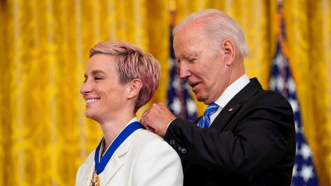 Меган Рапино получила Президентскую медаль Свободы от президента Джо Байдена в конце минувшей недели в Белом доме. Медаль Свободы — это одна из двух высших наград США для гражданских лиц, вручаемая по решению президента США.В случае с Меган Рапино этой награды впервые удостоена футболистка.