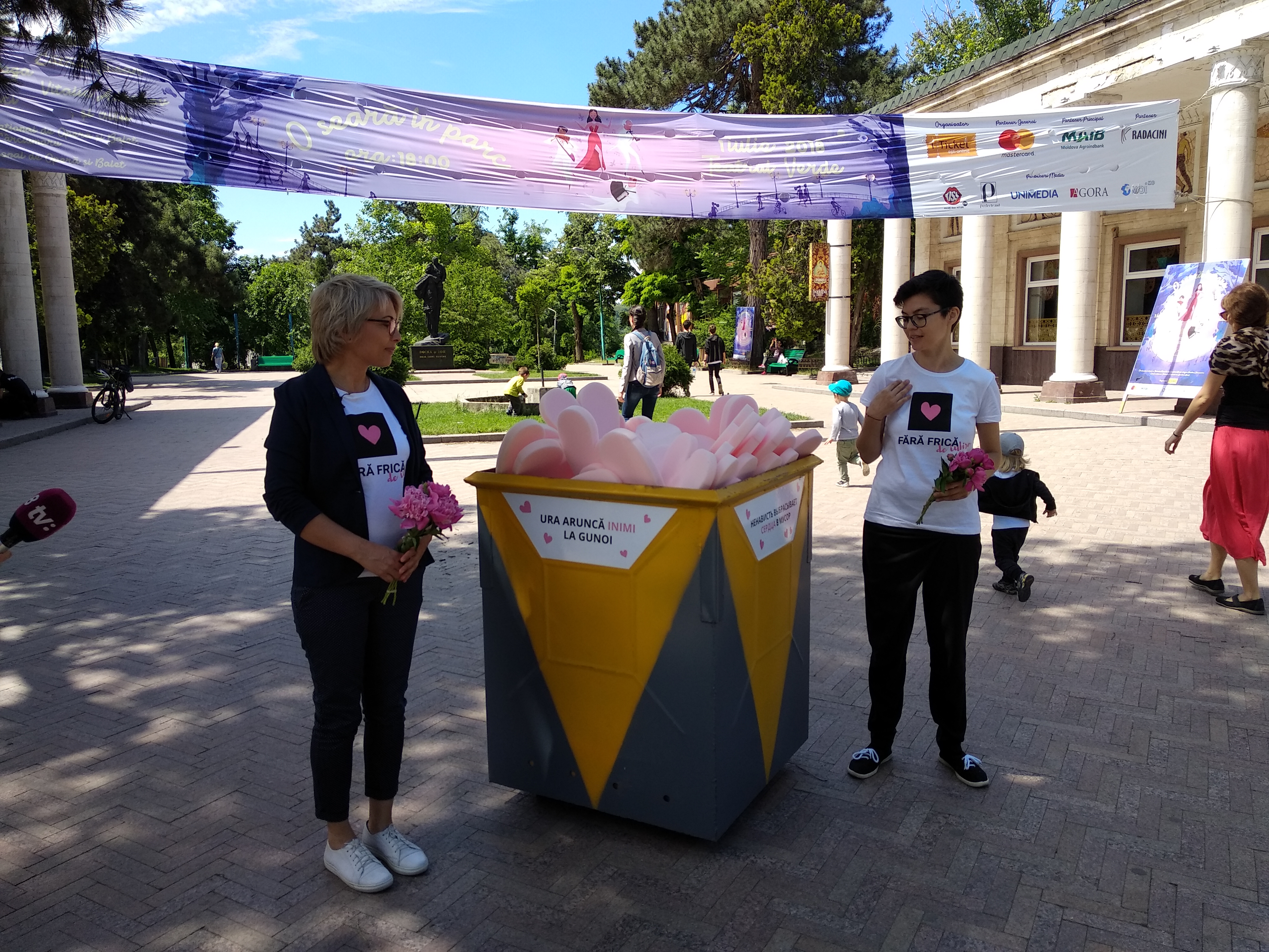 Мусорный бак полный сердец розового цвета был установлен 17 мая в центре столицы на улице Матеевича. Бак, на котором написано «Ненависть выбрасывает сердца в мусор», - художественная инсталляция Центра информации ГЕНДЕРДОК-М, являющаяся частью социальной кампании «Fără Frică de Iubire».
