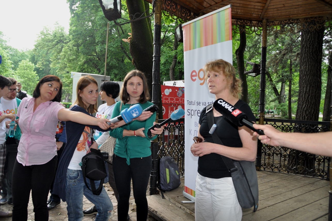 Именно так называлась публичная акция, проходившая в среду, 15 мая, в столичном парке им. Штефана чел Маре. Заключалась она в сборе обращений к ЛГБТ-людям и всему обществу. Фактически это было пополнение коллекции видеообращений от общественных деятелей, психологов, артистов, журналистов и прочих специалистов, которые уже записаны и которые можно просмотреть на сайте проекта egali.md.