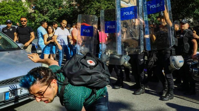Полиция в столице Турции Анкаре во вторник, 5 июля, жестко разогнала участников Марша гордости и задержала десятки человек. Ранее турецкие власти запретили все ЛГБТ-мероприятия, но около 50 человек с радужными флагами организовали импровизированную колонну и направились по маршруту к городскому парку.