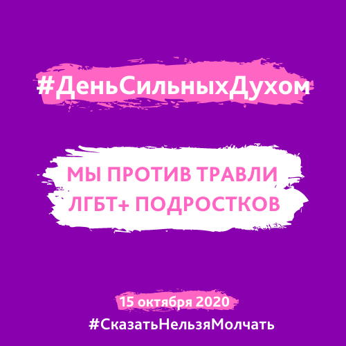 Акция задумана организаторами как возможность повысить осведомленность общества о проблеме травли ЛГБТ+ подростков в школах. Российская ЛГБТ-сеть и Ресурсный центр для ЛГБТ приглашают всех принять участие в акции, приуроченной к Дню сильных духом. В этот день разные люди и организации, неравнодушные к проблеме травли из-за сексуальной ориентации и гендерной идентичности, будут публиковать на своих онлайн-ресурсах информацию об этой проблеме.